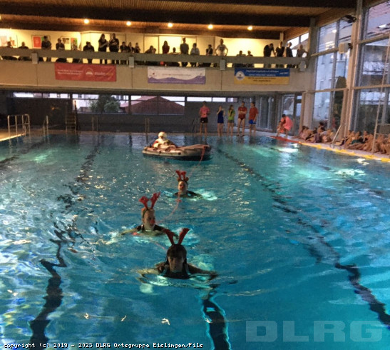 Am dritten Advent fanden die 49. DLRG-Vereinsmeisterschaften im Eislinger Hallenbad statt. 50 Teilnehmerinnen und Teilnehmer haben über mehrere Monate die erforderlichen Disziplinen im Training geübt, und so gab es spannende Wettkämpfe um die Pokale. Zwanzig Helfer sorgten für einen reibungslosen Ablauf der Wettkämpfe. Sprecher Matthias Hanf erklärte die einzelnen Schwimm-Disziplinen und forderte die Zuschauer auf der Tribüne dazu auf, die Schwimmer mit Applaus anzufeuern. Aufgeteilt in entsprechende Altersklassen mussten folgende Disziplinen erfüllt werden: Hindernisschwimmen, Freistil, Rückenschwimmen ohne Arme, Flossenschwimmen und das Retten einer Puppe. Die drei besten Schwimmer der jeweiligen Jahrgänge erhielten einen Pokal. Die dargebotene Luftmatratzen-Staffel verkürzte die Warteze ... Mehr erfahren
