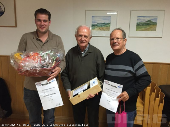 Am Samstag, dem 12.11.2016 fanden in Greffern die 21. Baden-Württembergischen DLRG-Seniorenmeisterschaften im Rettungsschwimmen statt. Die DLRG Ortsgruppe Eislingen war mit einer Top Mannschaft, in der am stärksten besetzten Klasse AK170, vertreten. In dieser Klasse müssen die 4 jüngsten Schwimmer gemeinsam mindestens 170 Jahre alt sein. Diese Vorgaben erfüllten Jochen Lange, Bernhard Hanf, Ulrik Sanwald, Simon Mühleis und Hans-Jörg Andonovic-Wagner. Trotz der starken Konkurrenz aus ganz Baden-Württemberg konnte sich die Mannschaft der OG Eislingen in 3 von 4 Wettkämpfen als schnellste beweisen. Sie landete, trotz Strafpunkten wegen eines kleinen Technikfehlers, mit solidem Vorsprung auf Platz 1. Die Mannschaft freut sich jetzt auf die Tei ... Mehr erfahren