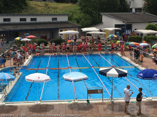 Am Sonntag, 12. Juli 2015, trafen sich 223 Schülerinnen und Schüler zum Bezirkswettkampf im Uhinger Freibad. Die Teilnehmer aus zehn DLRG-Ortsgruppen traten je nach Altersklasse in unterschiedlichen Disziplinen gegeneinander an. „Dabei haben sie zusammen gut 18 Kilometer zurückgelegt. Das entspricht etwa der Entfernung von Uhingen nach Gingen. Der Ressortleiter, Stephan Ludwig, Schwimmen, Retten und Sport (SRuS), eröffnete um 10 Uhr das Schülertreffen gemeinsam mit Uhingens Bürgermeister Matthias Wittlinger und dem Uhinger DLRG-Vorstand Volker Sentek. Bereits um 8.30 Uhr waren sämtliche Parkplätze am Freibad belegt. Von allen Seiten strömten Kinder und Jugendliche mit ihren Familien zum DLRG-Schülertreffen. „Reihum tragen die Ortsverbände im Bezirk dieses Treffen seit vielen Jahren aus. ... Mehr erfahren