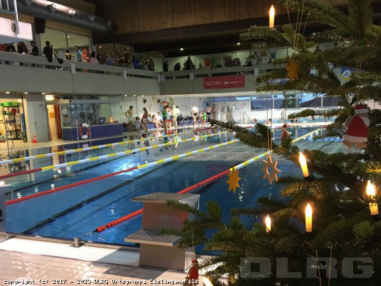 Am dritten Advent fanden die 48. DLRG Vereinsmeisterschaften im Eislinger Hallenbad statt. Mit 90 Teilnehmerinnen und Teilnehmern war es die größte Veranstaltung der DLRG im Jahr 2019. 29 Helfer sorgten für einen reibungslosen Ablauf der Wettkämpfe. Sprecher Hans-Jürgen Droste erklärte die einzelnen Schwimm-Disziplinen und forderte die rund 60 Zuschauer dazu auf, die Schwimmer mit Applaus anzufeuern. Aufgeteilt in entsprechende Altersklassen mussten verschiedene Disziplinen erfüllt werden: Hindernisschwimmen, Rückenschwimmen ohne Arme, Flossenschwimmen und das Schleppen einer Puppe.Dabei wurde eine Schwimmstrecke von insgesamt 6 km zurückgelegt. Die drei besten Schwimmer des jeweiligen Jahrganges erhielten ein ... Mehr erfahren