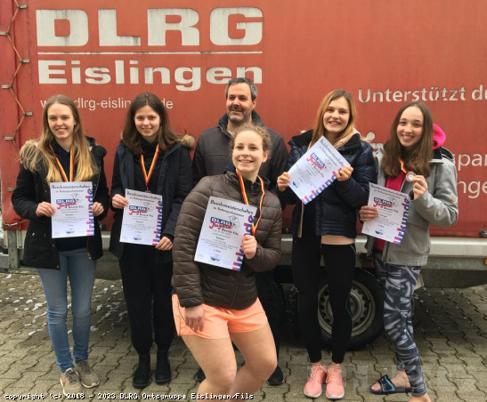 Am 23.03.2019 fanden die DLRG Bezirksmeisterschaften im 5-Täler-Bad in Geislingen statt. Die Ortsgruppe Eislingen war mit 19 Schwimmerinnen und Schwimmern vertreten. Das Bad war mit ca. 200 Teilnehmern aus acht Ortsgruppen gut gefüllt. Ein Fünftel der Kampfrichter stellte die OG Eislingen. Die Einzelschwimmer und Mannschaften mussten ihr Können beim Schleppen einer Puppe, der Gurtretter-Staffel, der Rettungs-Staffel und beim Hindernisschwimmen unter Beweis stellen. Dabei kommt es auf die Schnelligkeit sowie auf die ordnungsgemäße Durchführung der Rettung an. Jonas Hanf erreichte als Einzelschwimmer einen hervorragenden 2. Platz, Florian Mühleis verpasste ganz knapp das Siegertreppchen und kam auf Platz 4 bei neun Mitstreitern in der AK 13/14. ... Mehr erfahren